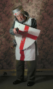 This began the research that he became famous for but he also continued to design and build props for the Coventry Mummers and even created the Queen's costume for the Sword Play that included a false, removable head. At this time he worked for Land Rover and made good use of vehicle components they no longer required. The Turkish Knight's shield is adorned with a Land Rover 'suspension bump stop' which works well when defending against St George who sports an aluminium saucepan helmet. Ron procured the saucepan from Coventry Market and was aware of the stall holder viewing him with intrigue and suspicion. Finally, the stall holder approached Ron and enquired if he needed any help to which Ron, holding said saucepan, replied, "Have you got this in a seven and a half?"